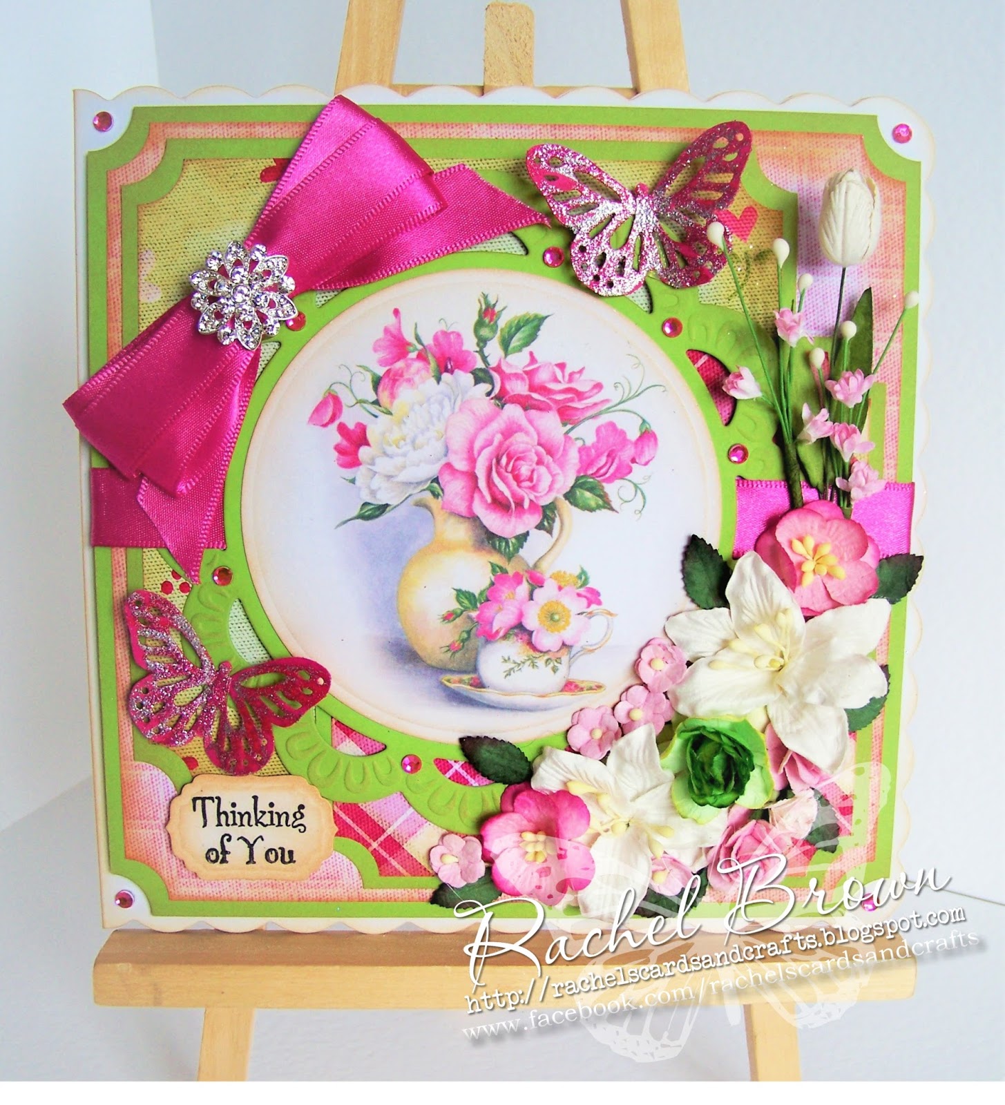 Well what can I say about this card that is linked to my trademark style? Well it's bright and it has a hint of glitter on. Well I could say that is my style as I make alot of cards that fit this category. Yes so that's it xx